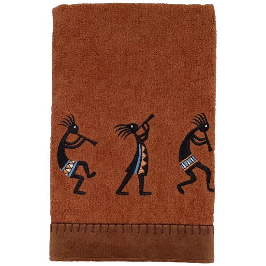 Make your bathroom’s look pop with the rich brick-red ground and gleaming gold paisley border of this Arabesque cotton bath towel from Avanti.