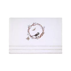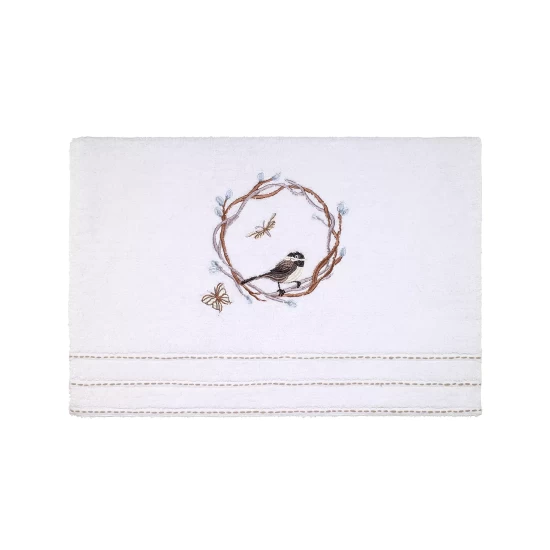 Make your bathroom’s look pop with the rich brick-red ground and gleaming gold paisley border of this Arabesque cotton fingertip towel from Avanti.
