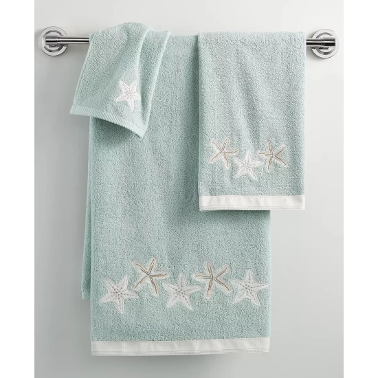 Evoke the coastal vibes of a beachy, seaside retreat with the Sequin Shells bath accessories collection from Avanti, featuring embossed seashells & starfish for an etherial display.