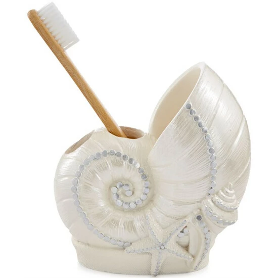 Evoke the coastal vibes of a beachy, seaside retreat with the Sequin Shells toothbrush holder from Avanti, featuring a raised seashell-inspired motif for an etherial display.