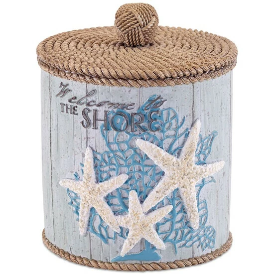 Transform your space into a stylish seaside escape with the sculpted starfish, coral and braided rope designs of this Beachcomber jar from Avanti.