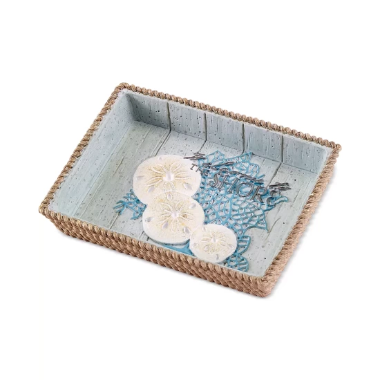 Transform your space into a stylish seaside escape with the sculpted sand dollars, coral and braided rope designs of this Beachcomber soap dish from Avanti.