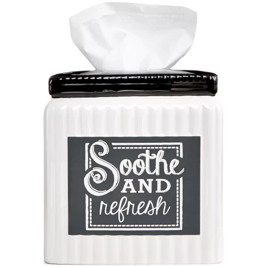Bring vintage vibes to your bathroom with the Chalk it Up tissue holder. A chalkboard-inspired design shows features fun, handwritten fonts for a stylish look.