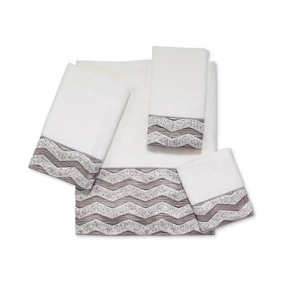 Shimmering shades of diagonal drama trim the plush cotton of the Avanti Galaxy Chevron washcloth to elegantly update your bath.