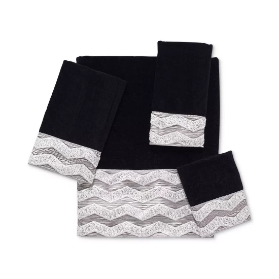 Rich texture in a robust herringbone pattern borders the plush cotton of the Avanti Galaxy Chevron bath towel collection to beautifully update your bath.