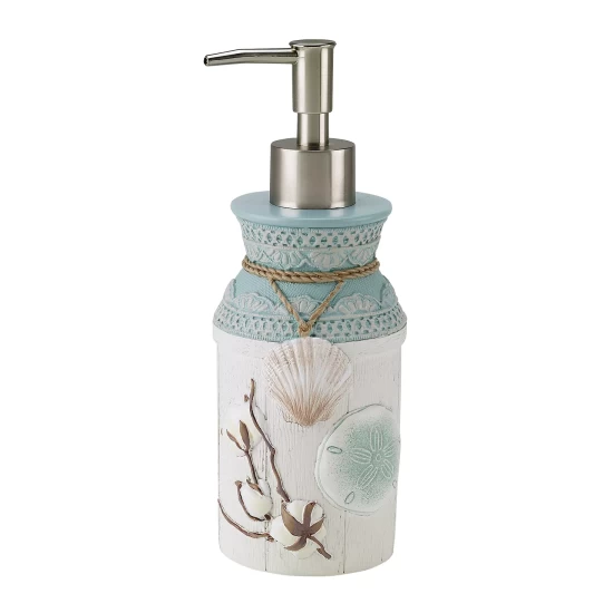 Refresh your bathroom’s decor with the seaside charm of this Island View lotion pump from Avanti, featuring a sculpted nautical motif rendered in soothing tones.