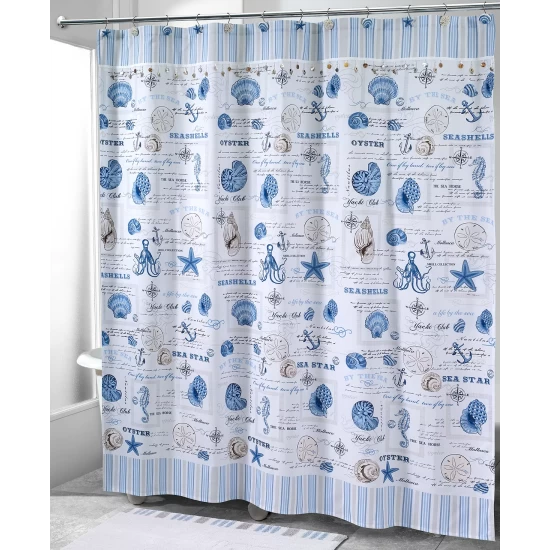 Refresh your bathroom’s decor with the seaside charm of this Island View shower curtain from Avanti, featuring a nautical motif rendered in soothing tones.