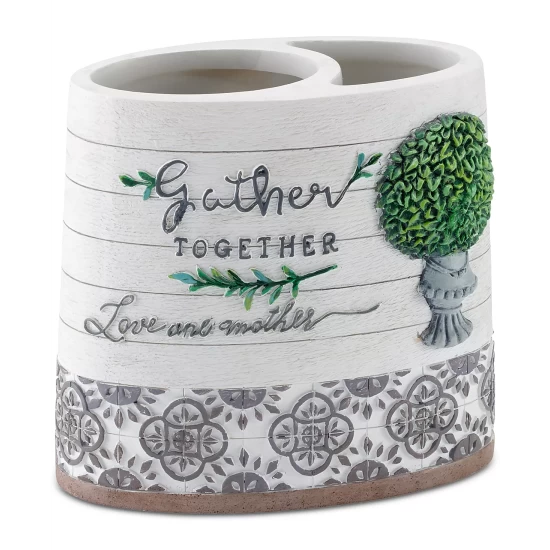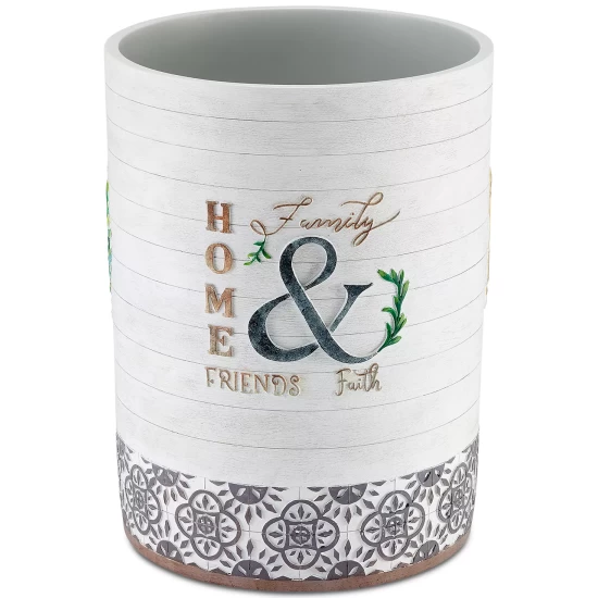 Add some relaxing rustic style to your bathroom with the charming flowers, phrases and faux-wood detailing of this Modern Farmhouse wastebasket from Avanti.