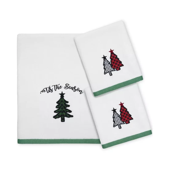 The Avanti Plaid Trees Decorative Bath Towel features an embroidered green Christmas tree with ornaments and “Tis the Season” in green above. The 100% cotton cream velour towel is finished with a coordinating green polyester border. 27″ x 50″, machine washable.