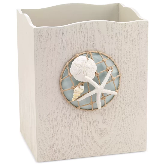 Featuring seashell and netting embellishments, this Seaglass wastebasket from Avanti gives your bathroom fresh coastal style for a beachfront look and feel.