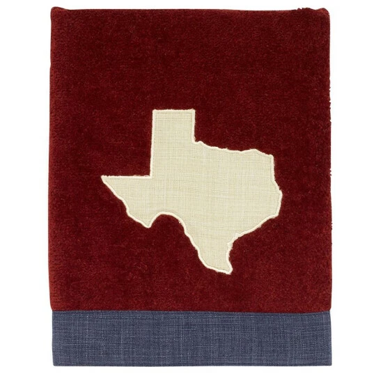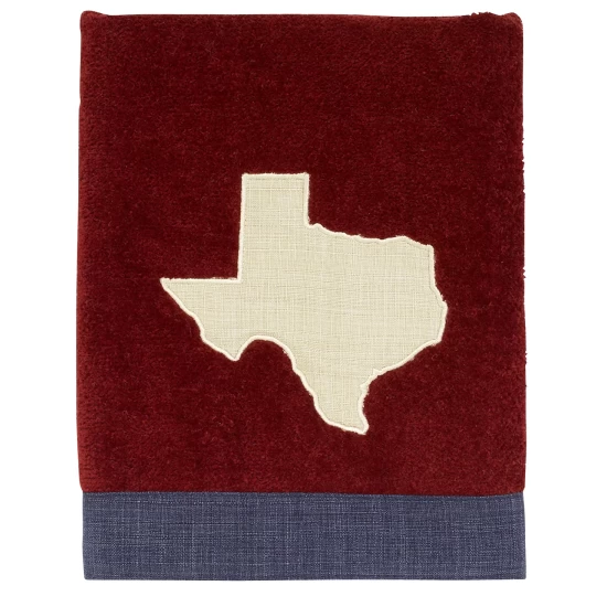 An ivory applique map of texas on a brick towel is an stylish design that lets you showe off your state pride.